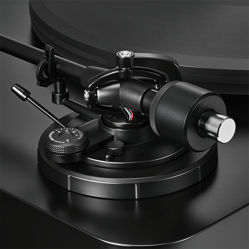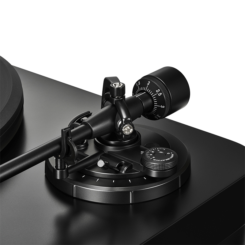 Braccio in alluminio a forma di J, con VTA e antiskating regolabili