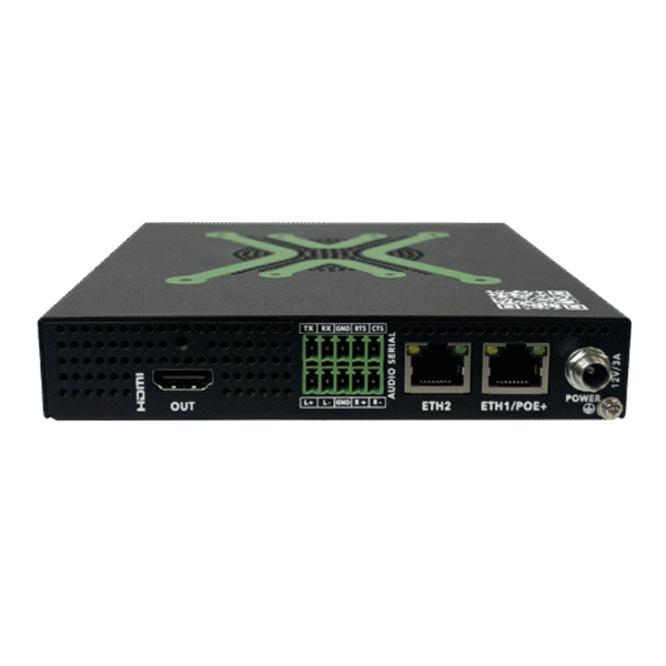 Il decoder IPMX P-AVN-2D offre una riproduzione video ad alte prestazioni per ambienti AV in rete. Basato su standard IPMX aperti, riceve e decodifica flussi video IP in uscita HDMI con bassa latenza e una qualità d'immagine eccezionale. Supportando la compressione H.264 e H.265, l'alimentazione PoE+ e i formati audio professionali, il P-AVN-2D semplifica la distribuzione video in tempo reale in aule, sale conferenze e ambienti di produzione, offrendo una decodifica affidabile e basata su standard a qualsiasi rete AV-over-IP da 1 Gbps.