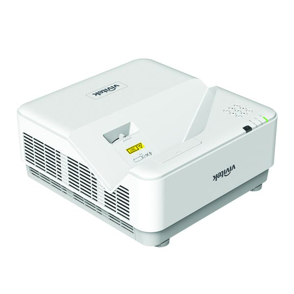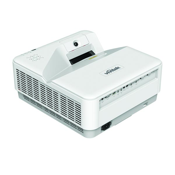 Contrasto 3,000,000:1 (Full On/Off). Throw Ratio 0.25:1 lente telecentrica. Dimensione immagini 70”-150". Distanza di proiezione 336mm~739mm. Connessioni: VGA-In (15pin D-Sub) (x1), HDMI Number of Ports v 2.0 (HDMI-In x2, HDMIOut x1), Audio-In (RCA) , Audio-In (Mini-Jack), VGA-Out (15pin D-Sub), Audio-Out (Mini-Jack), RJ45, RS-232, 3D-Sync, USB A (5V/2A (Power Only)), USB B (Service). Altoparlante 1x10W. Alimentazione tramite USB-A (5 V/1,5 A) per dispositivi wireless. Supporto per il controllo di rete / Vivitek PJ-Control per comunicazioni semplici e controllo remoto tramite una rete IT. Funzione interattiva opzionale disponibile con penna IR e Finger Touch. Soluzioni integrate di monitoraggio e gestione della rete, tra cui Crestron® RoomView™ e altre. Fino a 30.000 ore di prestazioni affidabili in Eco Mode REC.709 (>95%), e Red Ratio (>5.9%). Include lenti a focale corta e supporta la proiezione a 360° da qualsiasi angolazione Sviluppato pensando all'efficienza energetica e alla sostenibilità ambientale. Dimensioni 380 x 405 x 150 mm. Peso 8 Kg. Colore bianco
